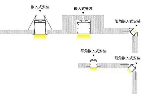 灯线普遍是嵌入式安装的,与墙面、地面、柜体表面齐平。具体安装流程也很简单: