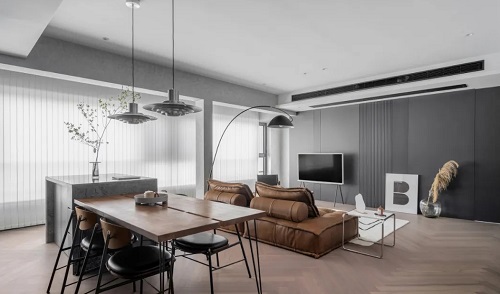 如果是大户型,空间里最好有一件软装是深色,可起到点睛的作用,不至于让家显得没有烟火味儿。