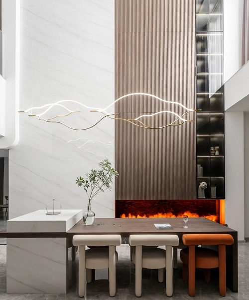 一个功能区一盏吊灯的设计已经很难满足居住舒适度了,但是,还是有很多人认为干嘛要费钱装那么多的灯,又不是看不见。朋友们,如果不追求舒适度,一盏吊灯确实可以。但你想,如果你躺在沙发上看书、玩手机,旁边是落地灯照明,会不会比头上的吊灯更有氛围感?