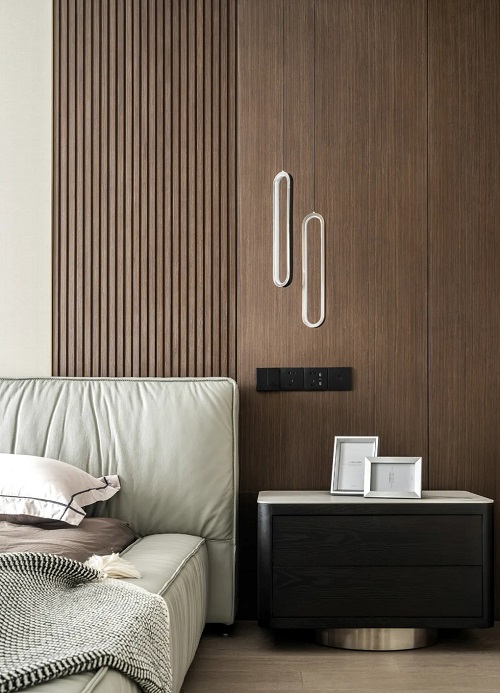 卧室---顶面灯线/筒灯+床头灯+踢脚灯;