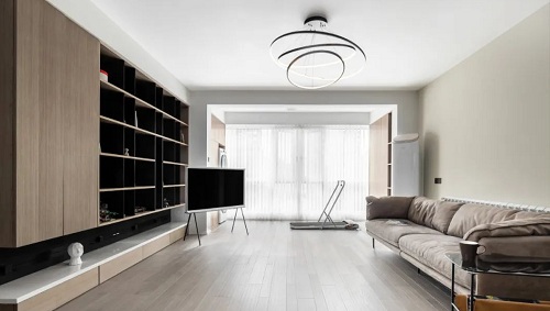 在灯光设计上,无主灯虽然很高级,但是价格不太友好,咱们可以选择主灯+筒灯的设计来丰富空间照明,也让顶部空间不那么单调。