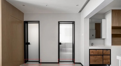不要踢脚线的设计虽然视觉效果更好,但是造价高。想省钱又想弱化踢脚线的存在感,可选与墙面同色的踢脚线。此外,在踢脚线的高度和厚度上也要注意,选极窄、极薄款。厚度可选1.2cm,高度可选4cm或6cm,存在感更低。