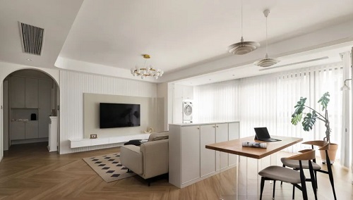 在省钱实用方面,很建议大家选择“轻硬装,重软装”。轻硬装指的是硬装要简约大方,以实用轻便为主,同时也要重视硬装质量,以免来回返工;重软装指的是用软装烘托全屋氛围,往后也不容易过时。让我们来看看它在实际过程中的运用是怎样的: