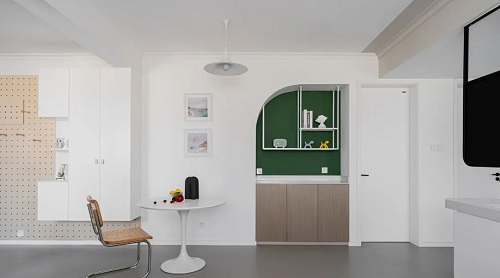 墙面追求性价比可以直接选乳胶漆。可不要以为用乳胶漆是跌份,都说选贵不如选对,乳胶漆施工便捷、后期保养方便。如果你嫌他太过单调,也可以用不同配色做点缀或者拼色墙,来让空间更有层次感。